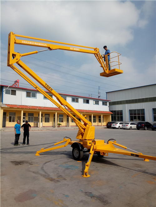 四川客戶來(lái)驗(yàn)收的這臺(tái)拖車折臂式液壓升降平臺(tái),升高14米,載重260公斤,最大延伸工作距離2-8米,它的動(dòng)力電源可采用柴油機(jī),電瓶,及汽油機(jī).