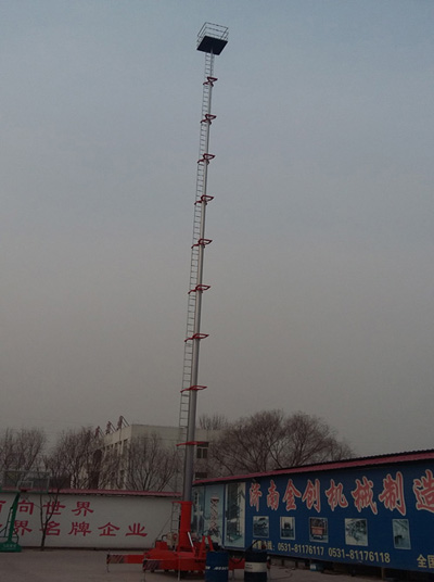 2、整機由平臺、伸縮油缸、單梯式或雙梯式防轉(zhuǎn)機構(gòu)、底盤油箱、支腿、行走輪等組成。